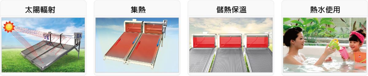 太陽能熱水器可應用於一般家庭用熱水、大型旅館、宿舍、溫水游泳池、工業預熱系統等。