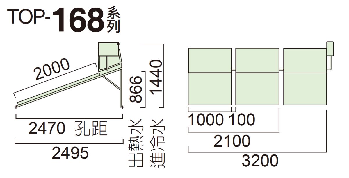 - 機台重量含儲水桶、集熱板、進水箱、腳架。